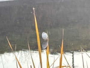 向こう岸のシラサギさんは 黄葉した葦の先端がお似合い~ ^^) _旦~~