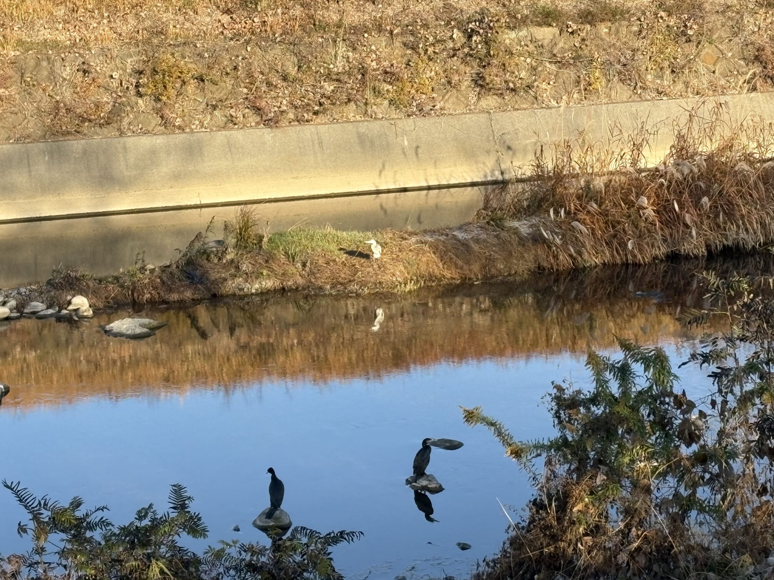 - 25/12/09(火)【今朝の川の主役は カワウさんとシラサギさん】