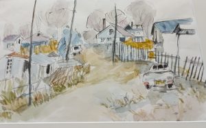 今 福祉センターに架けていただいている葦ペン画 『刈り入れの後』