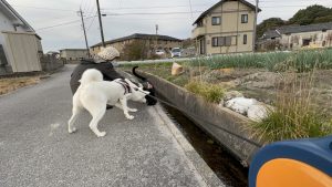 その後 小さな溝を飛び越えて 近くのお家の庭に入っていきました🏠