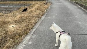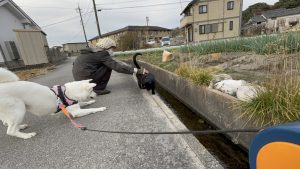 尻尾をあげて少し警戒していましたが、