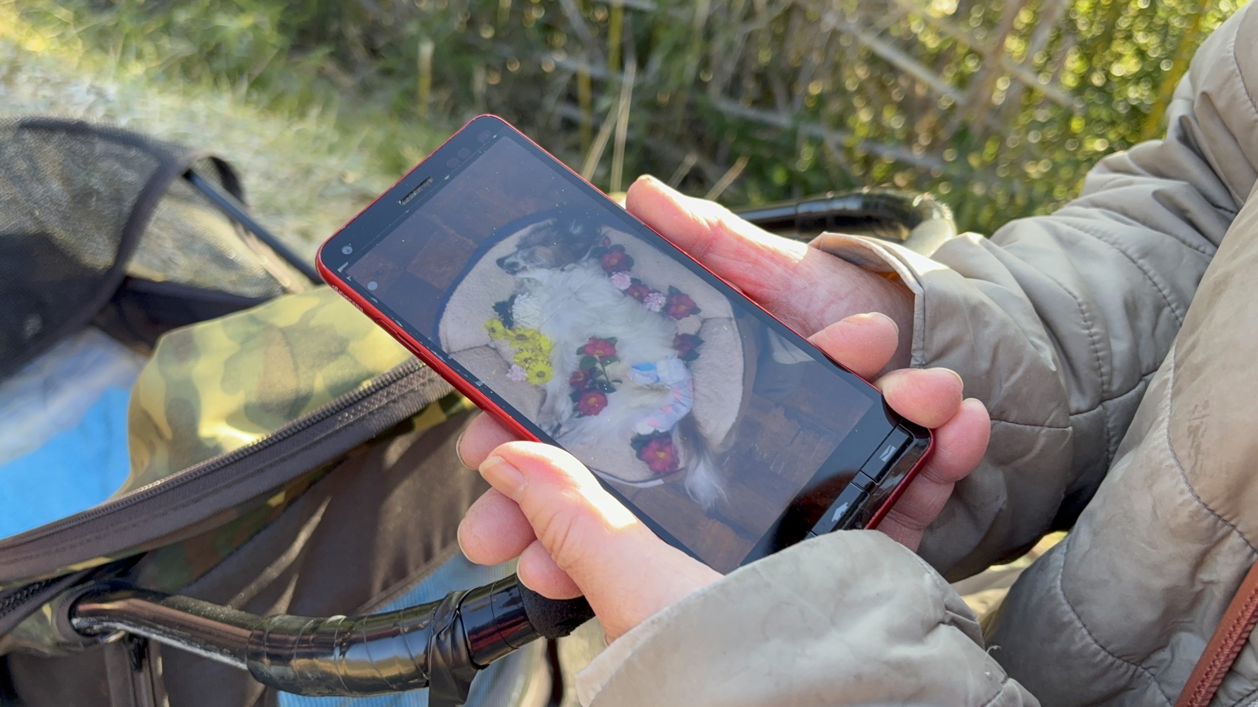 川の道で バギーを押したマルちゃんママさんに会いました。
