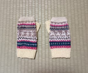 おかあさんは昨日、残り糸ばかりで自分のための手袋を作りました~🧶🧶